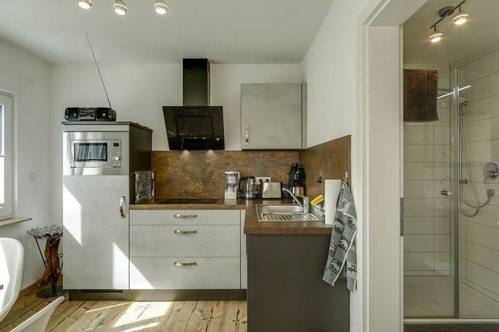 - Voll ausgestattete Küche (ohne Backofen)